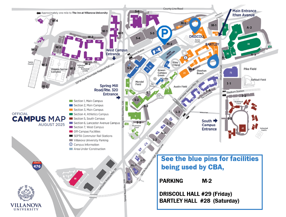 - Saturday's events will be held in Bartley Hall (#28)